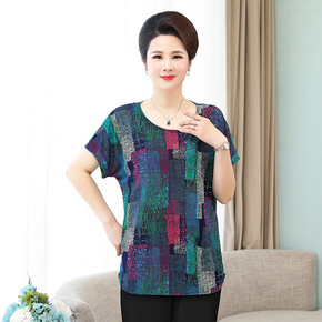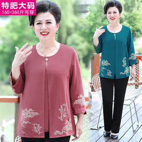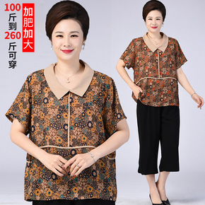 中老年女装夏装加肥加大码200多斤胖妈妈装短袖t恤...