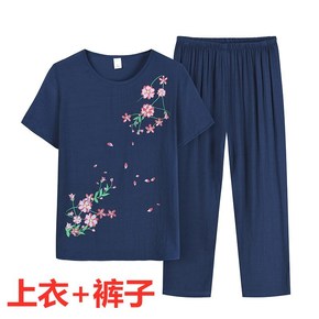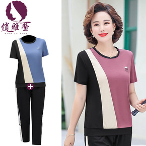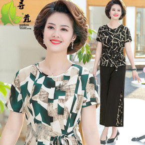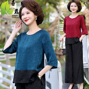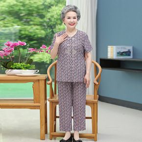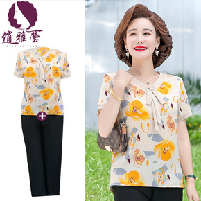 奶奶夏季套装中老年女装妈妈短袖棉麻两件套60岁老人...
