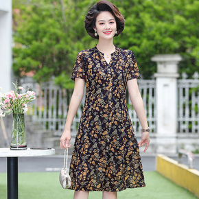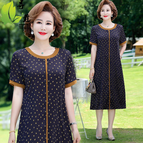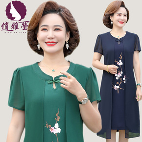 妈妈夏季女装妈妈装雪纺短袖连衣裙薄款中长款气质显瘦...