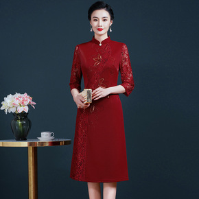 2022新款妈妈婚宴礼服春秋装高贵丈母娘连衣裙高端...