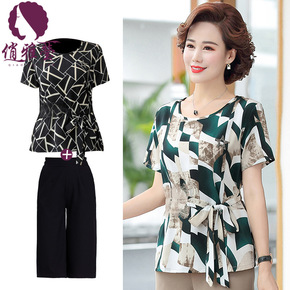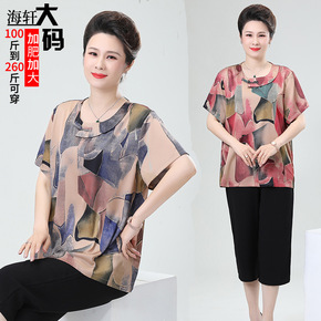 胖太太服饰加肥加大码200斤妈妈装两件套夏装中老年...