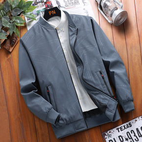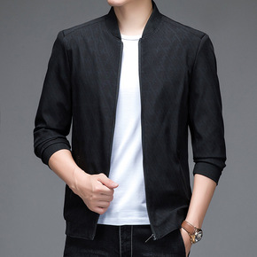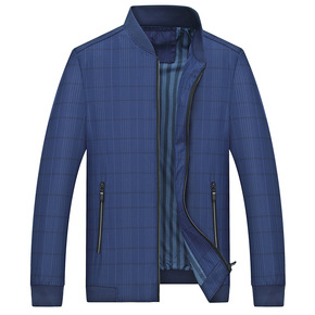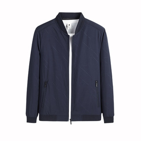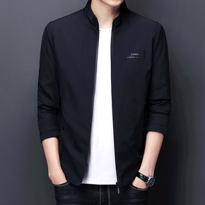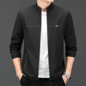 2021秋季薄款男士中年夹克外套立领纯色修身免烫上...