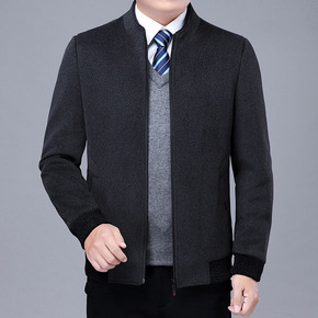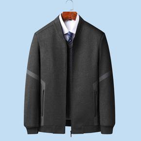 2021秋冬装厚款男式毛呢夹克中年男士休闲棒球领潮...