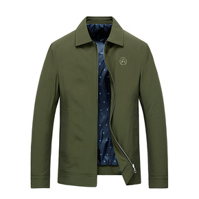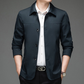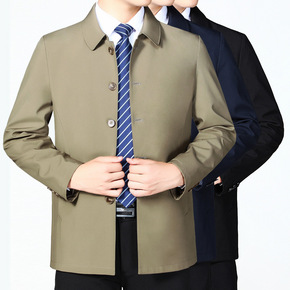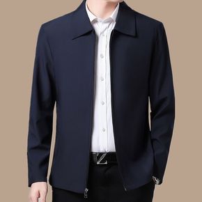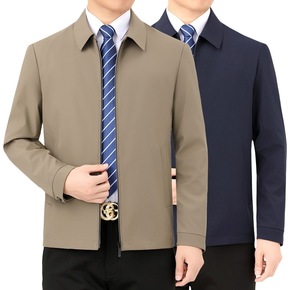 2021秋季新款男士纯色翻领夹克中年父亲薄款时尚外...