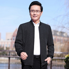 恒源祥中年翻领夹克男领导干部公务员秋冬外套商务正装...