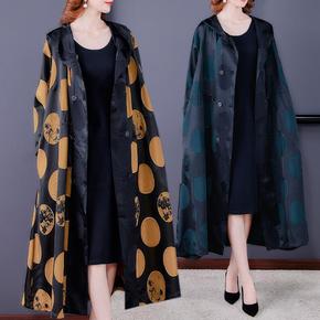 遮肉减龄中年女装大码连帽长款风衣秋装显瘦波点高端宽...