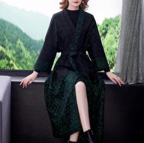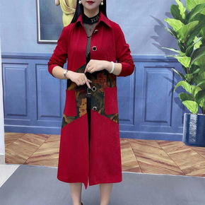 气质中年女装民族风拼接大码风衣秋冬复古提花中长款羊...