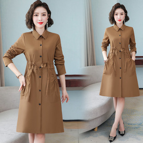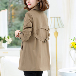 2021春秋新款妈妈装中长款风衣中年女装双排扣大衣...