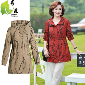 妈妈春装风衣外套洋气50岁60中老年女装宽松春秋中...