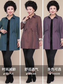 中年妈妈秋装外套中老年女50岁阔太太中长款高贵风衣...