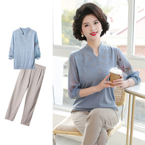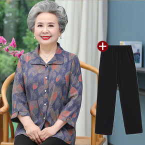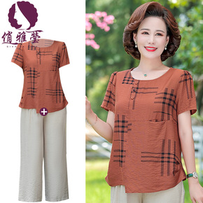 妈妈夏装套装时尚上衣中老年人宽松小衫四十岁女装洋气...