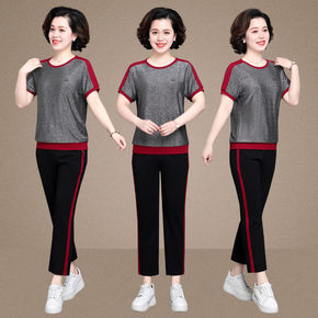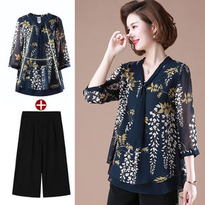 俏雅莹妈妈装阔腿裤夏季新款打底衫两件套大码中老年女...