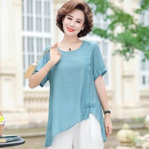 妈妈夏装新款棉麻小衫T恤两件套40岁中老年女士洋气...