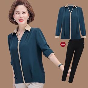 2021秋季款上衣圆领长袖45-55岁中老年女装套...