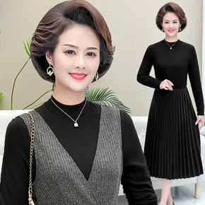 2021新款妈妈秋装洋气连衣裙两件套装中老年女装春...