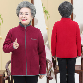 中老年女装摇粒绒卫衣开衫秋冬拉链太太外套奶奶保暖夹...