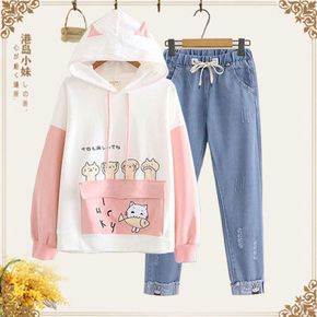 初中学生运动休闲套装14岁15岁女孩卫衣两件套16...