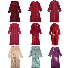 妈妈秋装套装喜婆婆婚宴礼服结婚长袖中老年女装两件套...