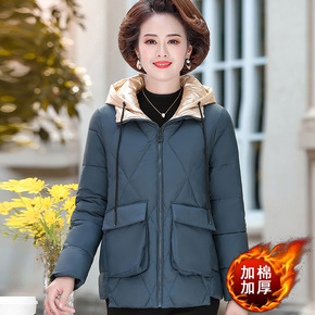 2021新款妈妈秋冬加厚羽绒棉衣女中老年女装短款棉...