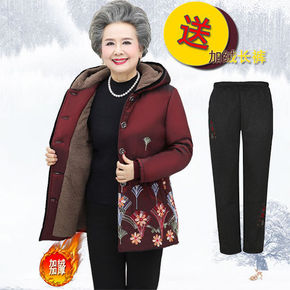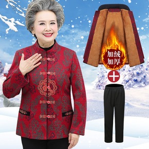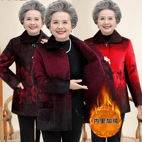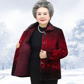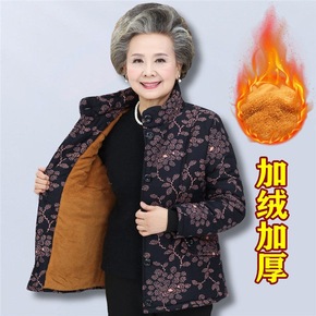 中老年女装秋装奶奶装外套加绒加厚妈妈装冬装老人棉衣...