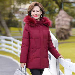 老年人冬装羽绒服50岁60妈妈洋气白鸭绒外套中老年...