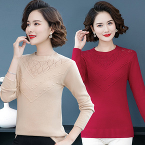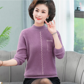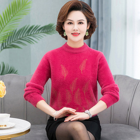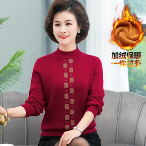 半高领妈妈套头毛衣2021秋冬新款中老年人女装加绒...