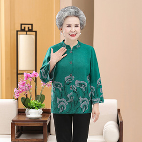 奶奶装春秋装女70-80岁外套老人衣服老年人毛衣加...