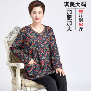 200斤新款妈妈春秋装长袖打底衫中老年女T恤洋气上...