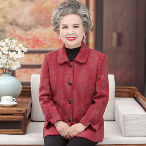 老年人秋装女外套60岁70奶奶装毛呢洋气妈妈装老太...