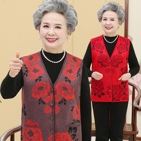 奶奶秋冬针织羊毛衫开衫阔太太老人衣服中老年人妈妈外...