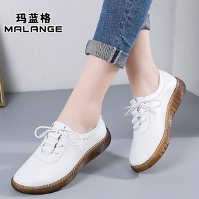 真皮妈妈小白鞋女平底休闲镂空单鞋舒适软底防滑牛筋底...