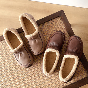 2021春款新款真皮软底豆豆鞋女春秋百搭舒适防滑平...