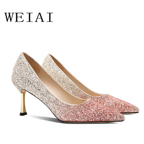 新款学生高跟鞋女十八岁生日礼物女细跟公主水晶鞋女成...