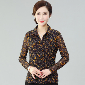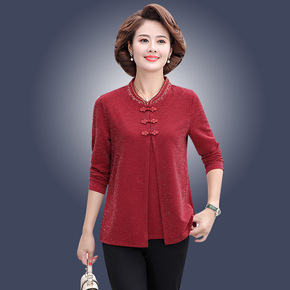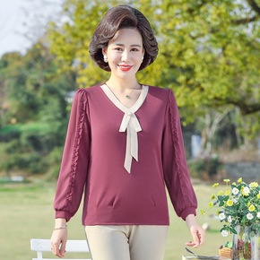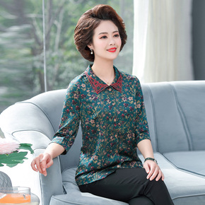 竹语声2021新款妈妈春装上衣小衫中长款中年女装长...