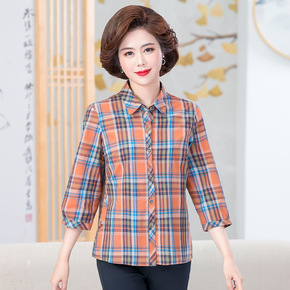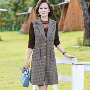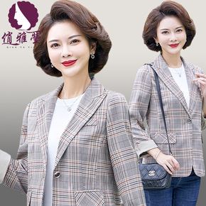 俏雅莹妈妈装格子小西装翻领春秋新款上衣韩版减龄中老...