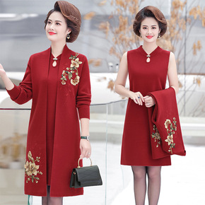 妈妈秋装连衣裙两件套装洋气高贵50岁中年妇女春秋裙...