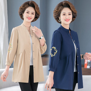 新款妈妈洋气上衣女装春秋装中长款风衣40岁50中老...