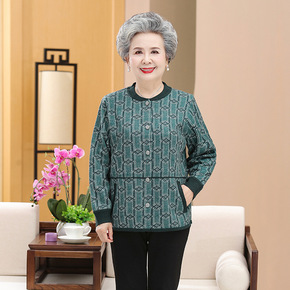 老年人秋装女外套奶奶装春秋针织羊毛衫上衣70岁80...