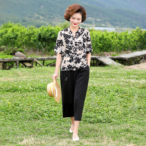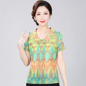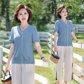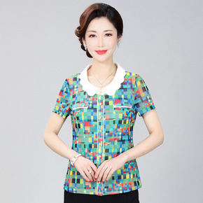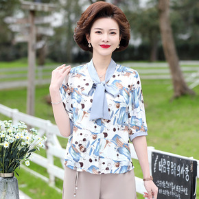 妈妈装2021夏季新款40岁50中年短袖上衣洋气小...