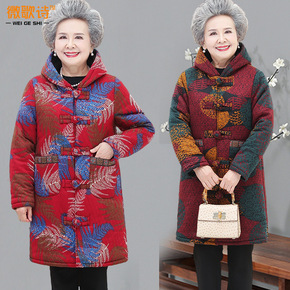 中老年女装中长款棉衣妈妈冬装外套加绒棉服老人奶奶大...
