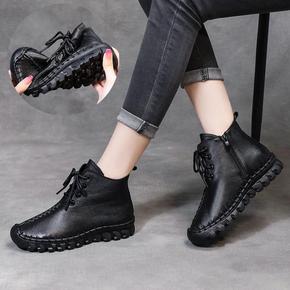 马丁靴女真软皮中年妈妈春秋棉靴2022年新款休闲系...