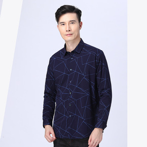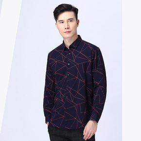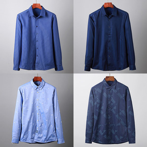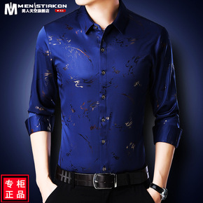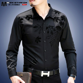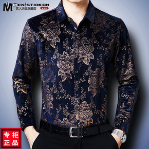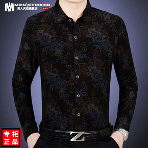 品牌剪标男士冬季新款尖领印花商务休闲加绒保暖长袖衬...