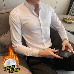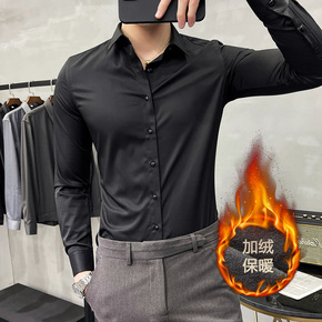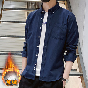 男士衬衫冬季加绒加厚保暖长袖衬衣韩版纯色牛精纺打底...