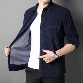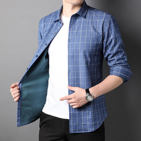 免费代发2021秋冬款男式加绒长袖衬衫翻领免烫修身...