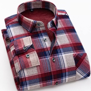 男式加绒衬衫冬季中青年休闲修身格子加厚新款男士衬衣...