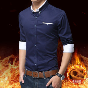 男士长袖修身款男衬衫保暖衬衫休闲男加绒衬衣大码韩版...