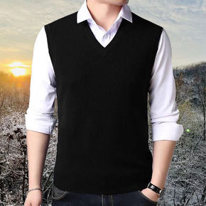 爸爸毛衣加绒男中年保暖针织打底衫中老年冬装假两件毛...