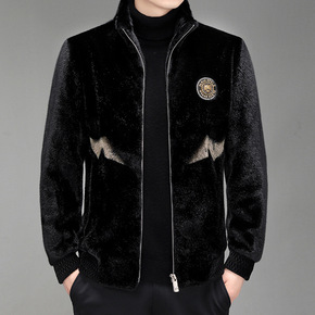 秋冬中老年雪尼尔外套男士新款夹克衫上衣加厚休闲爸爸...