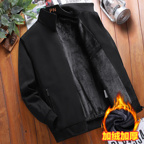 爸爸冬装外套男中年加绒加厚夹克男中老年人爷爷冬季翻...