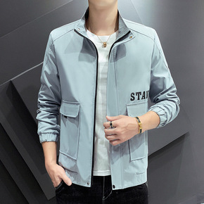 2022春季新款男士翻领外套短款工装夹克潮流中青年...